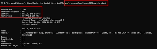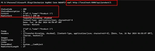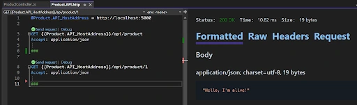 Once the containers are up and running, you can test your ASP.NET Core Web API endpoints using Postman or any other API testing too, or even by the default Product.API.http that is generated by default from Visual Studio. Use the following endpoints: