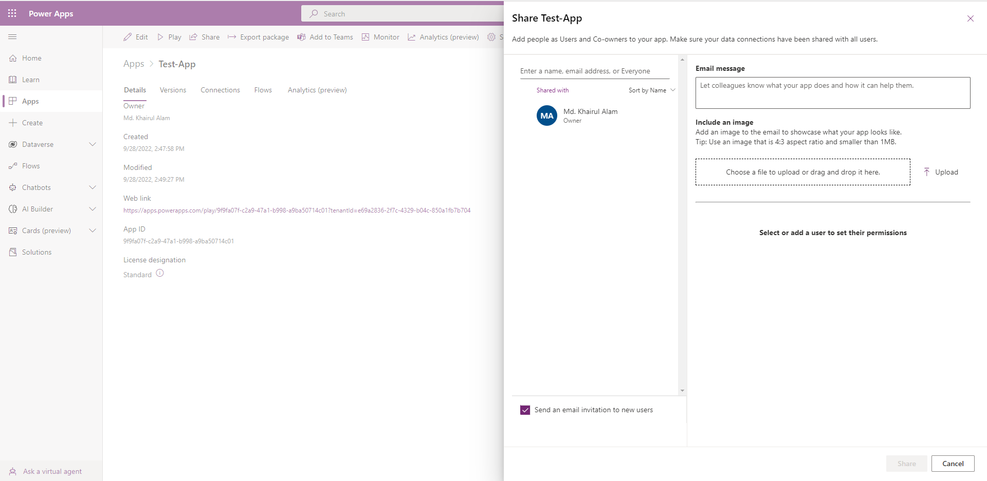 - Now you can share the app to your users, To share click on share icon from top right corner