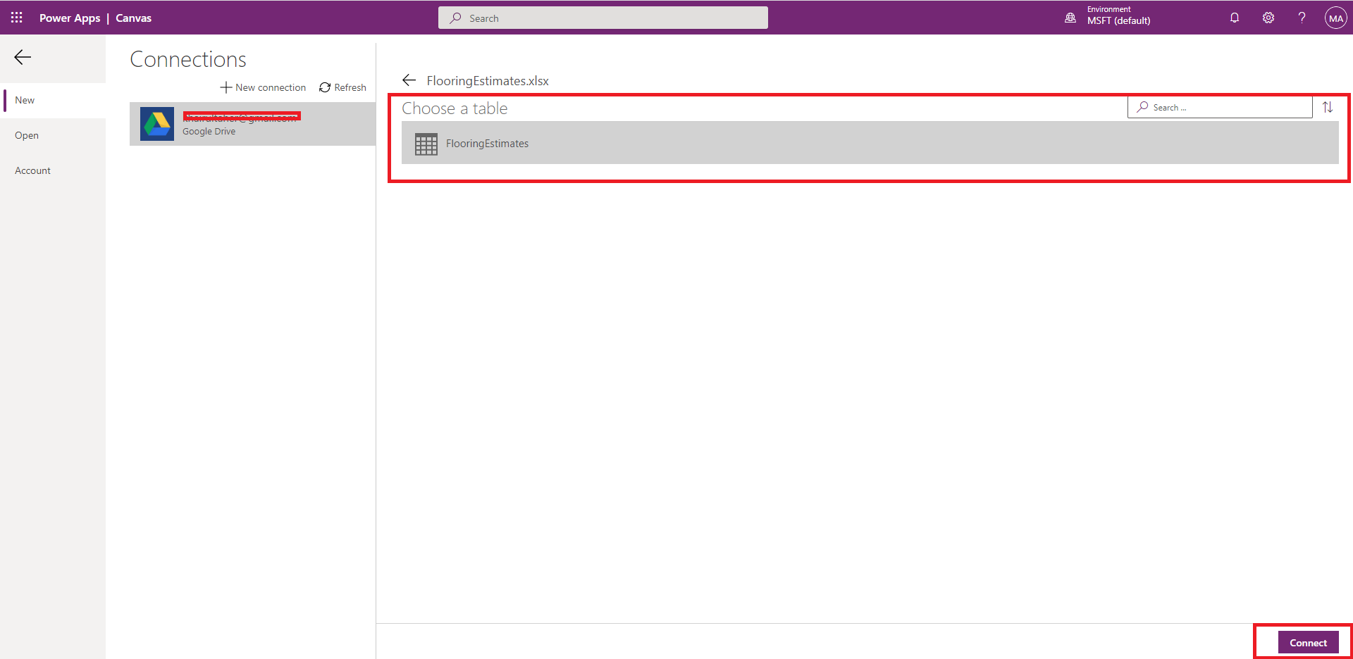 - Select your source Excel file and click on Connect button, You can download the example file from here Flooring Estimates