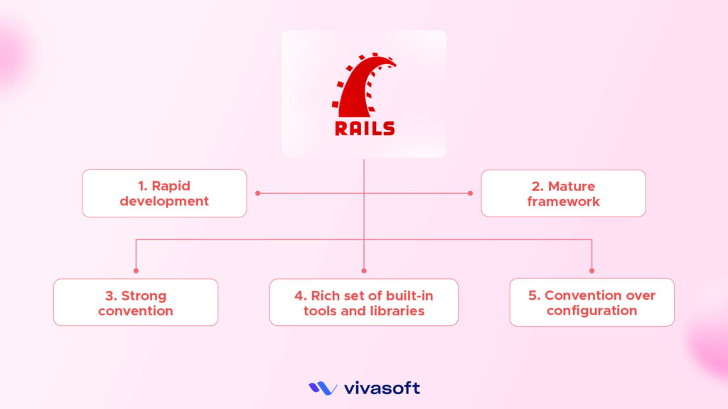 Supported by the CoC paradigm, Ruby on Rails streamlines the development process using a conventional approach. Analyzing the codebase, it detects the most flexible steps for your project development. For the beginners, this feature is the ultimate savior.