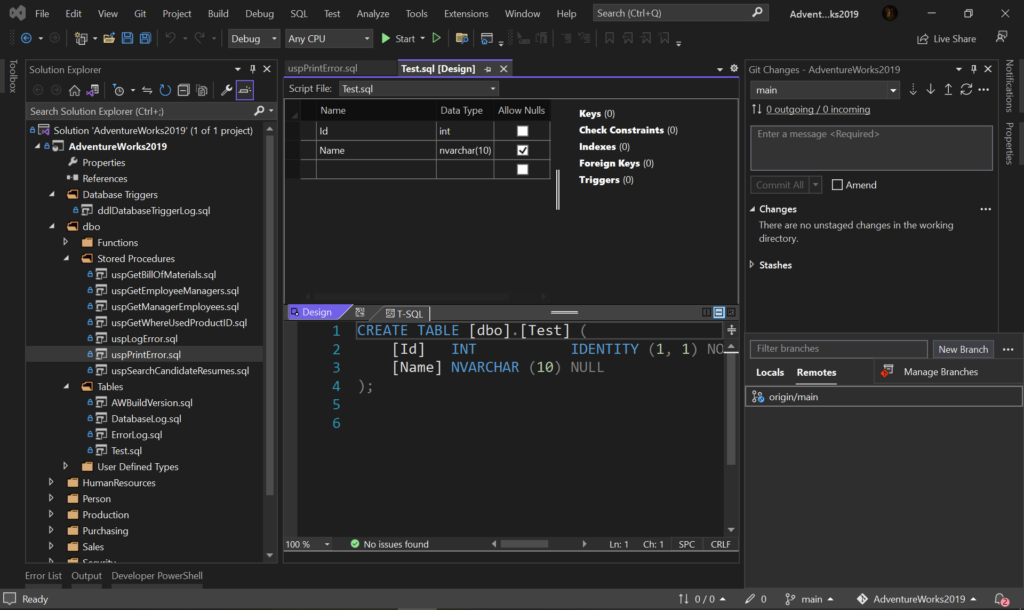 5. Now update a Stored procedure (Add comment) from source Sql Server Database as well as create a new table for testing purpose.